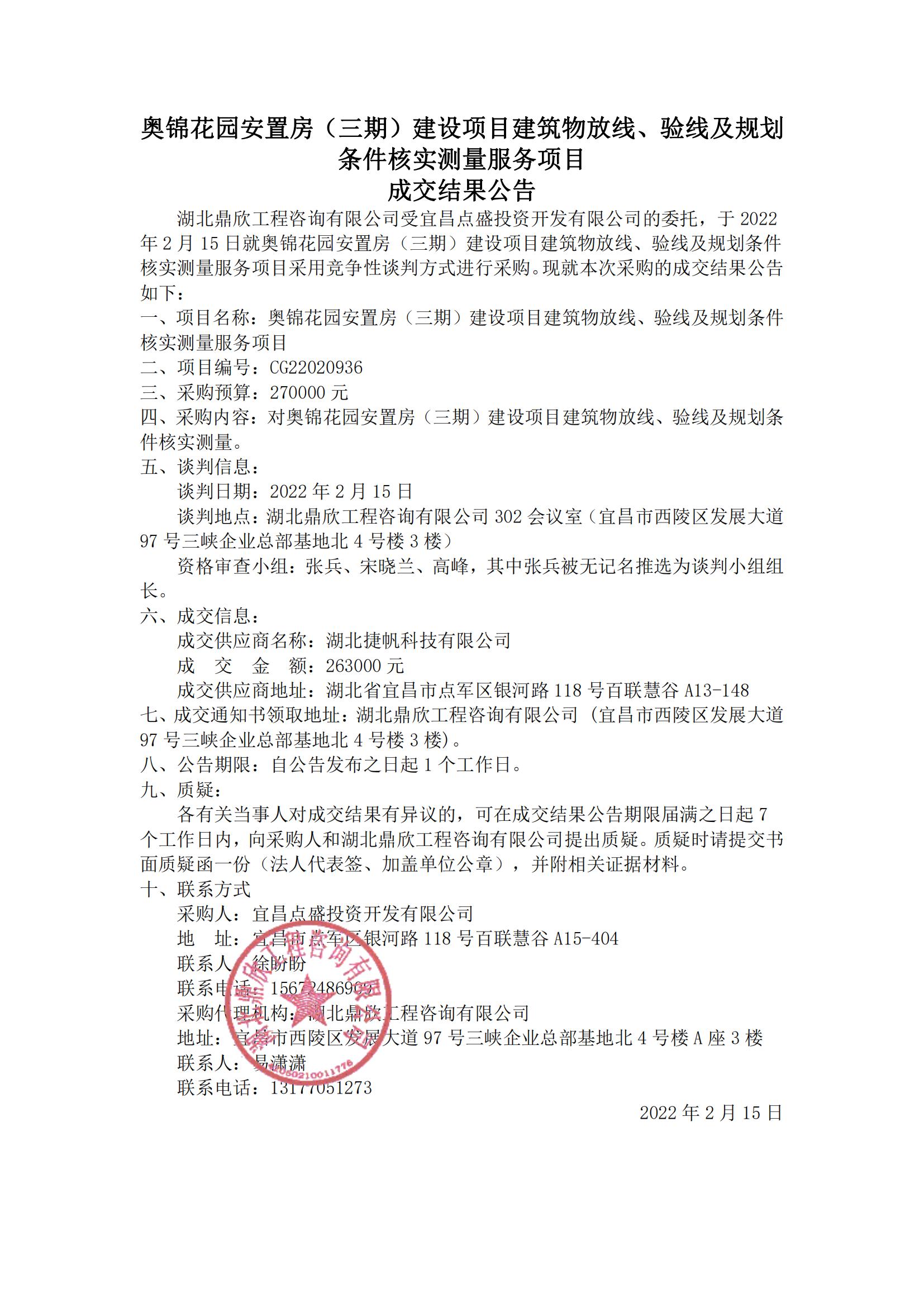 奧錦花園安置房(三期)建設(shè)項(xiàng)目建筑物放線、驗(yàn)線及規(guī)劃條件核實(shí)測量服務(wù)項(xiàng)目成交結(jié)果公告