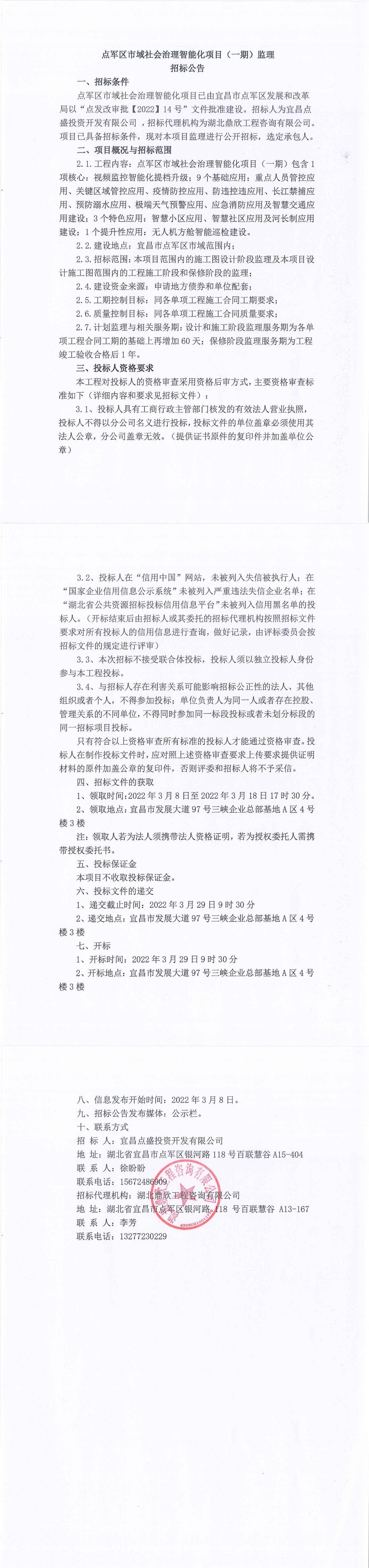 點軍區(qū)市域社會治理智能化項目(一期)監(jiān)理招標公告