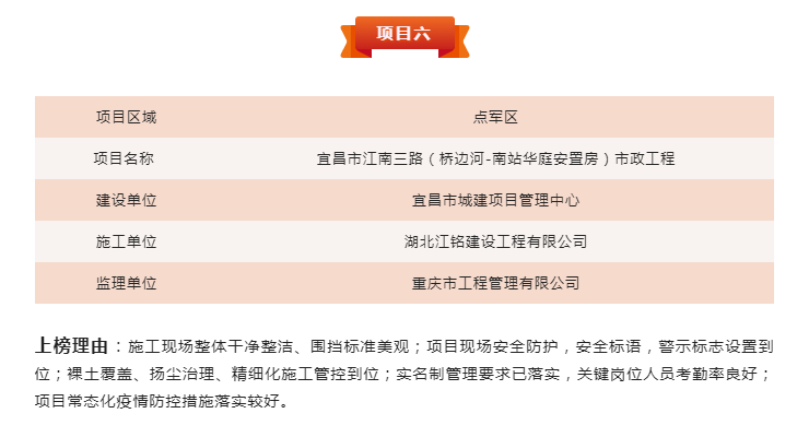 (通訊員:徐文剛、吳鵬翔)為進(jìn)一步貫徹落實(shí)《宜昌市揚(yáng)塵污染防治條例》《宜昌市城區(qū)建設(shè)工程文明施工管理紅黑榜制度(試行)》,強(qiáng)化建筑工地文明施工管理,壓實(shí)建設(shè)單位文明施工主體責(zé)任,鼓勵文明施工先進(jìn)典型,打擊和曝光不文明施工違法行為,結(jié)合建筑工地實(shí)名制管理、關(guān)鍵崗位人員到崗履職相關(guān)要求,宜昌市住建局組織評選了2022年第七期建筑工程安全文明施工管理“紅黑榜”。點(diǎn)盛投資開發(fā)有限公司代建項(xiàng)目江南三路,成為點(diǎn)軍區(qū)唯一獲評紅榜的市政項(xiàng)目。