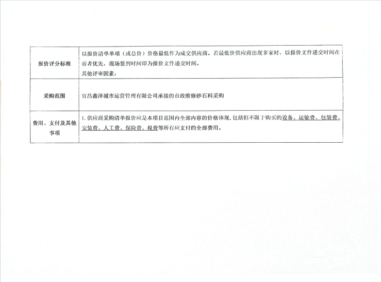 宜昌鑫澤城市運營管理有限公司市政維修石材采購項目詢價公告