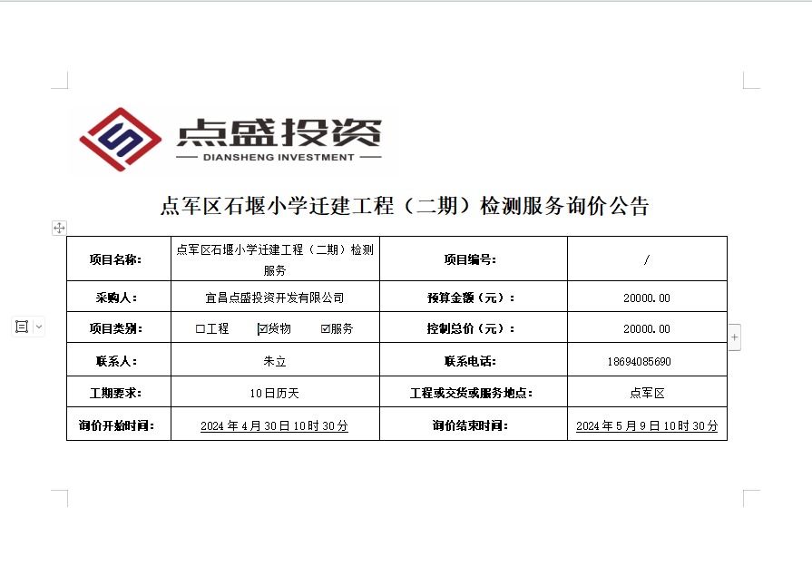 發(fā)布時間:2024/4/30 來源:宜昌點(diǎn)盛投資開發(fā)有限公司 訪問:831