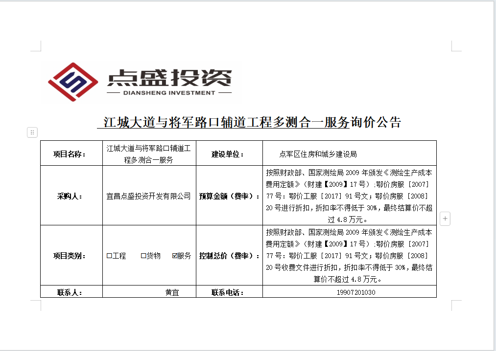 江城大道與將軍路口輔道工程多測(cè)合一服務(wù)詢(xún)價(jià)公告