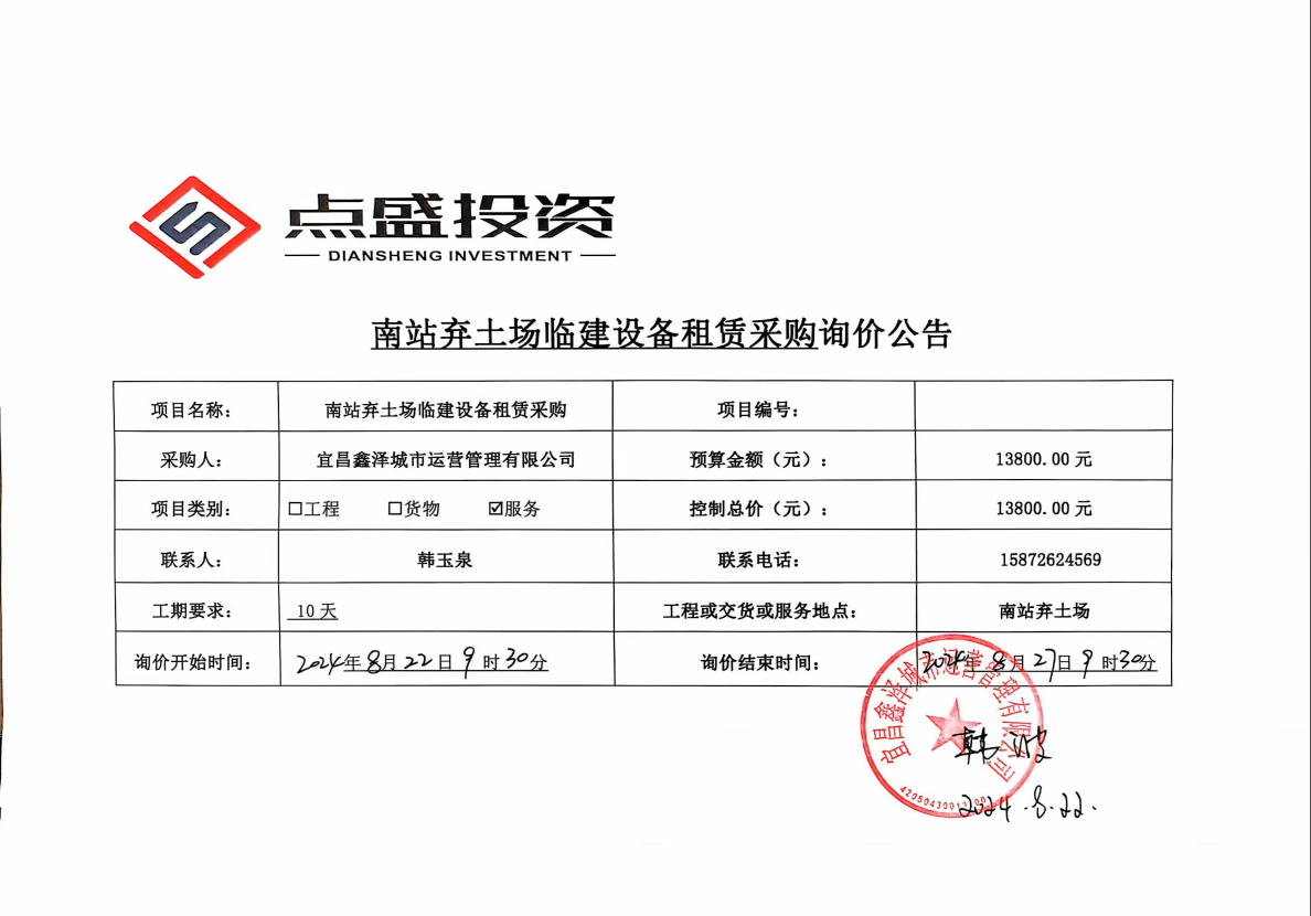 南站路棄土場臨建設(shè)備租賃采購項(xiàng)目詢價(jià)公告