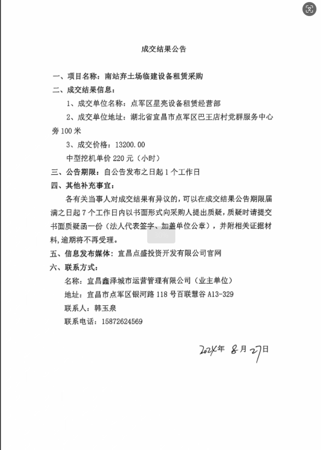 南站路棄土場(chǎng)臨建設(shè)備租賃采購(gòu)項(xiàng)目成交公告