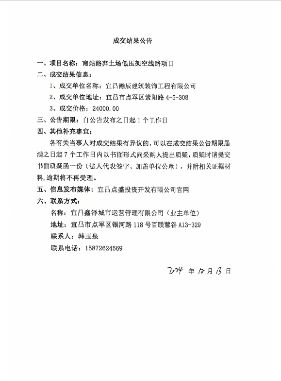 南站路棄土場低壓架空線路項(xiàng)目成交公告